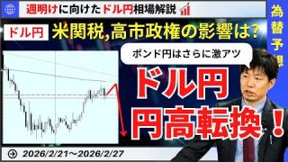 予想・見通し【為替】天井ロング悲報!?ドル円150円へ「円高」加速の可能性。日銀利上げ/米利下げ後退/ドル安。ドル円週間レンジは150.00-155.30円と予想。みんかぶ編集長の山岡氏と解説いたします。 ... 2026.02.17予想・見通し