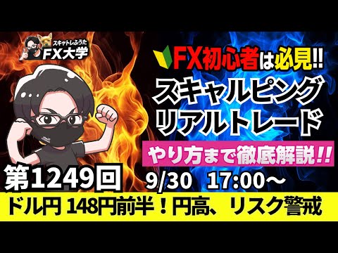 09/30 09:27に「【FX初心者におすすめ】スキャトレふうた FX大学」さんによって公開された「【FXライブ配信】リアルトレード解説、第1249回、本日はポンド円で負けトレード!日銀の利上げ観測で円高優勢、148円前半!米政府機関閉鎖|デイトレ・スキャルピング|ドル円・ポンド円相場分析と予想」の動画