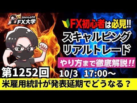 10/03 10:08に「【FX初心者におすすめ】スキャトレふうた FX大学」さんによって公開された「【FXライブ配信】リアルトレード解説、第1252回、米雇用統計、米政府機関閉鎖で発表延期!米国リスク警戒もやや円安展開でドル円147円中盤|デイトレ・スキャルピング|ドル円・ポンド円相場分析と予想」の動画