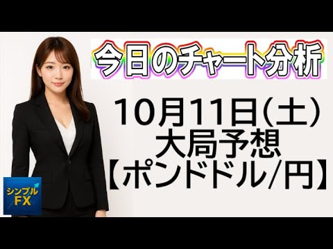 10/11 11:00に「シンプルFX」さんによって公開された「【FX大局予想】10月11日ポンドドル・ポンド円相場チャート分析」の動画