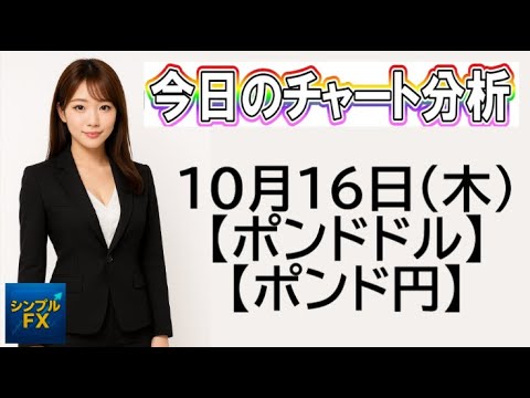 10/16 01:29に「シンプルFX」さんによって公開された「【FX最新予想】10月16日ポンドドル・ポンド円相場チャート分析」の動画
