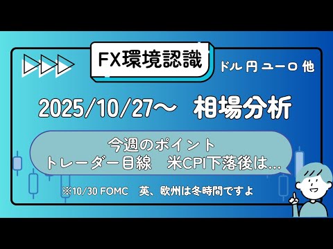 10/25 22:00に「サーブルFX」さんによって公開された「【FX環境認識】ドル円 ユーロドル ポンドドル 豪ドルドル ユーロ円 ポンド円 豪ドル円 20251027 トレーダー目線 米CPI下落後は…」の動画