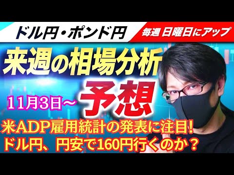 11/02 07:00に「【FX初心者におすすめ】スキャトレふうた FX大学」さんによって公開された「【FX来週の相場分析と予想】高市トレード継続、ドル円160円目指すか?米雇用統計、米政府機関閉鎖の影響、米ADP雇用統計に注目!スキャルピング!ドル円・ポンド円、週間為替展望(11月3日~11月7日)」の動画