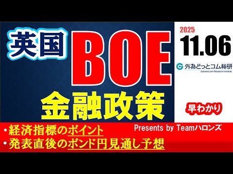 11/05 10:46に「外為どっとコム 公式FX動画ch」さんによって公開された「ポンド/円見通しズバリ予想、2分早わかり「イギリス イングランド銀行金融政策」2025年11月6日発表 #外為ドキッ」の動画