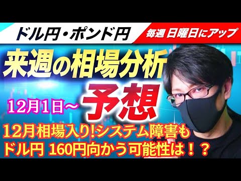 11/30 07:00に「【FX初心者におすすめ】スキャトレふうた FX大学」さんによって公開された「【FX来週の相場分析と予想】12月相場入り!ドル円158円目指すのか?世界市場が混乱、米CMEで先物10時間停止|デイトレ・スキャルピング!ドル円・ポンド円、週間為替展望(12月1日~12月5日)」の動画