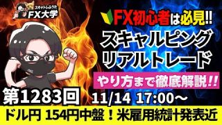 チャート分析【FXライブ配信】ドル円リアルトレード解説、米雇用統計発表近い!米指標発表に注目!米利下げ観測が後退、米株急落、為替介入は?|デイトレ・スキャルピング|ドル円・ポンド円相場分析と予想【第1283回】 ... 2025.11.15チャート分析ポンド円予想・見通し