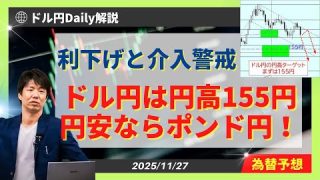 チャート分析【FX来週の相場分析と予想】円急伸 ドル円160円の可能性 財務相が介入示唆 米利下げ観測再燃、週明けの展開デイトレ・スキャルピング!ドル円・ポンド円、週間為替展望(11月24日~11月28日) ... 2025.11.24チャート分析ポンド円予想・見通し