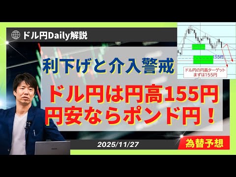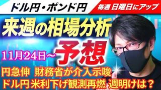 チャート分析【FX来週の相場分析と予想】円急伸 ドル円160円の可能性 財務相が介入示唆 米利下げ観測再燃、週明けの展開デイトレ・スキャルピング!ドル円・ポンド円、週間為替展望(11月24日~11月28日) ... 2025.11.24チャート分析ポンド円予想・見通し