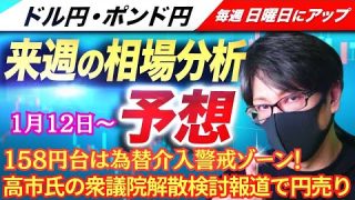 チャート分析【FX来週の相場分析と予想】ドル円 高市氏が衆院解散検討の報道で円売り展開で一時158円台まで上昇|デイトレ・スキャルピング!ドル円・ポンド円、週間為替展望(1月12日~1月16日) ... 2026.01.12チャート分析ポンド円予想・見通し