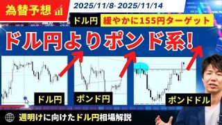 チャート分析【FX来週の相場分析と予想】FX初心者も分かる!ドル円今週の注目材料とチャート解読、米CPIが延期?|デイトレ・スキャルピング!ドル円・ポンド円、週間為替展望(11月10日~11月14日) ... 2025.11.10チャート分析ポンド円予想・見通し